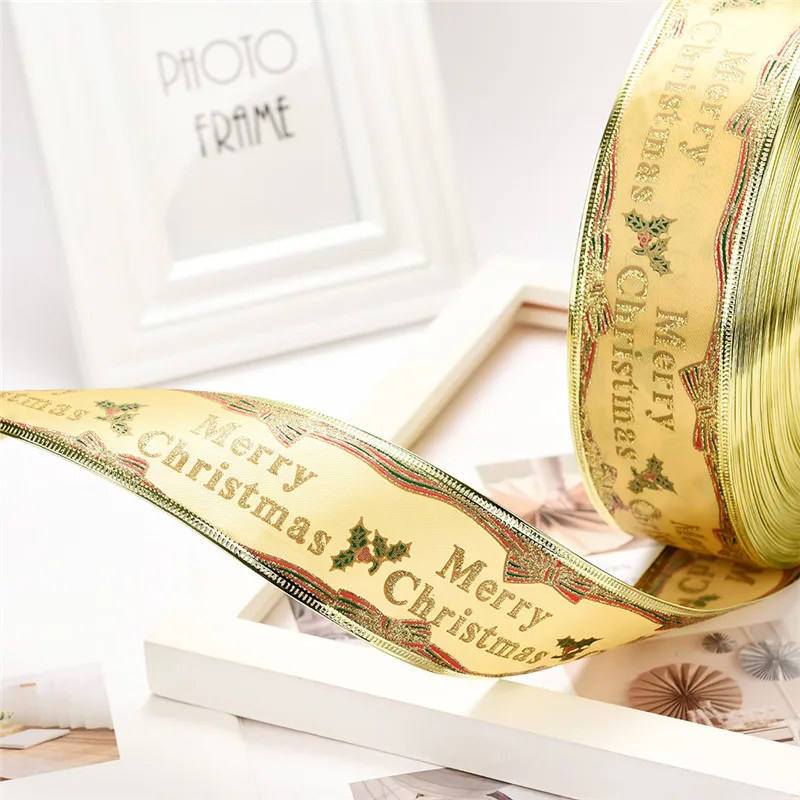 High-grade Printed Christmas Ribbon Grosgrain Satin Fabric Xmas Ribbons for Crafts Decoration Holid