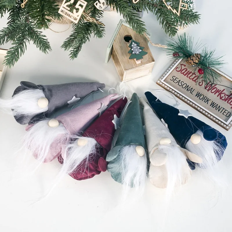 Merry Christmas Long Hat Santa Small Plush Gnome Doll Christmas Pendant Xmas Tree Drop Ornament Hol