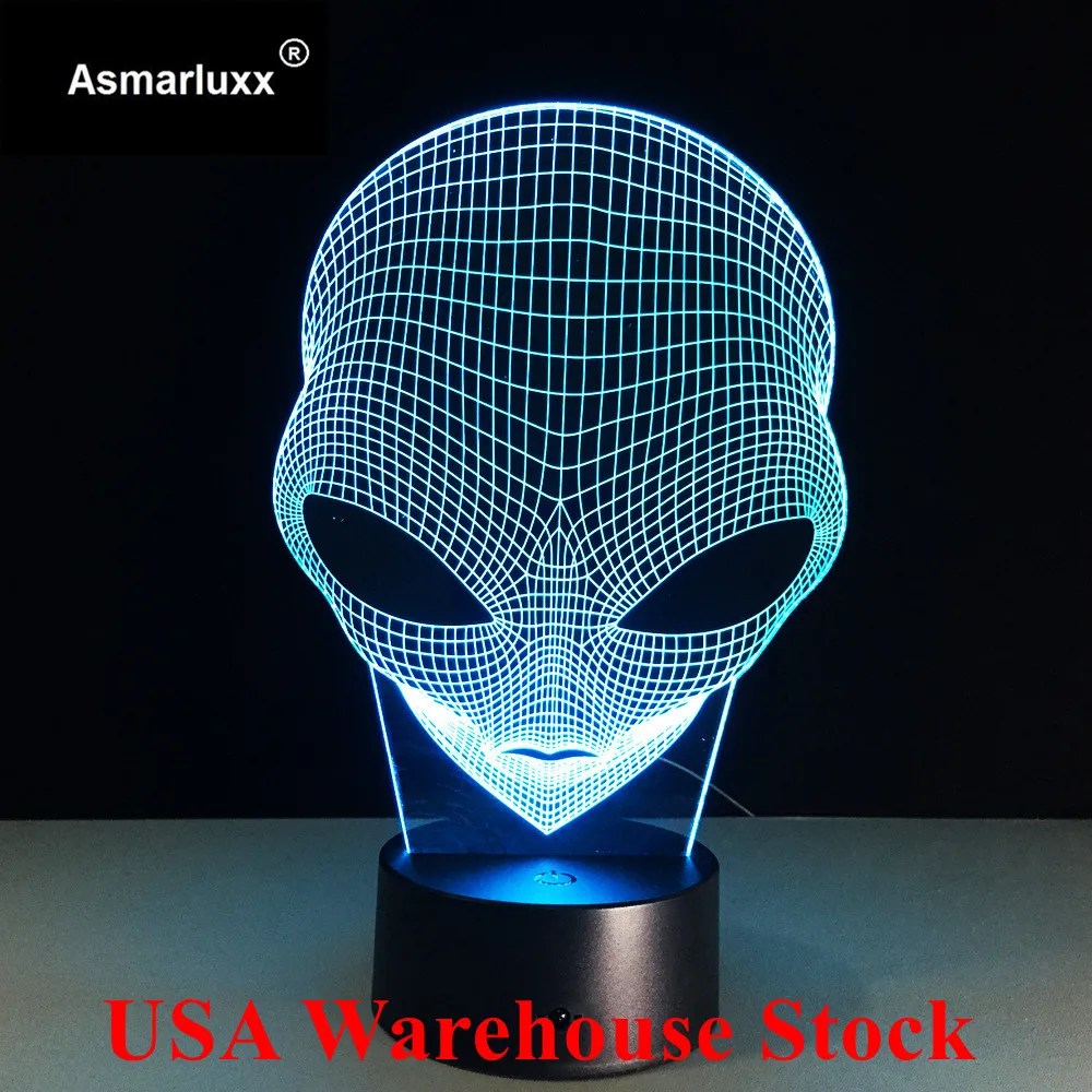 HOT Sale (Ship from US Or China) Alien 3D Hologram Illusion Lamp Acrylic Night Light With Touch Switch Lumin